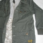 Куртка ( производитель Alphabet) для мальчика 6-7 years old, весна-осень, 130/64, темно-зеленого цвета, 100% cotton, подклад серый - 100%, на груди серый трикотажный манжет на молнии, закрывает горло...
