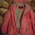 Куртка осенняя для девочки. Рост 128 см, цвет розовый.Сделана из водоотталкивающего материала, водонепроницаемость 5000 мм. Подкладка нейлон, на спине и шее флиз, внутри отстегивающаяся "юбка" от ветр...