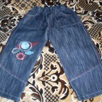 Джинсы(брюки) с рисунком для мальчика в отлисном состоянии!. Длина 55см, от междуножек 36, ширина 68, 2 кармана.