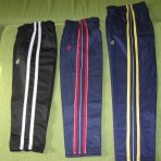 Брючки с красными полосками. См. замеры:длина по наружнему шву (с резинкой) 69 см., длина по внутреннему шву 48 см., резинка (полуобхват) 19 см., посадка 24( есть 26) см.