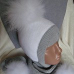 Помпоны из песца или енота, оформление на Ваш выбор- бантики, стразики, бусинки...