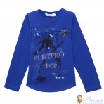 Трикотажный батник насыщенного синего цвета, с принтом в черно-серых тонах.