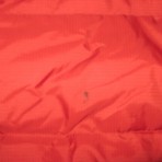 Верхняя ткань не продувается и не промокает, подкладка флисовая, наполнитель пух и перо. Состояние хорошее, дефект один, видно на последнем фото-на спинке маленькое черное пятнышко