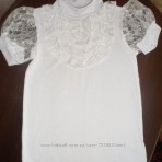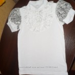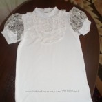 Блуза новая,белая с перламутровыми пуговицами,ни разу не одевалась.Купила вначале весны,а на осень стала маленькая.Если надо замеры,обязательно пришлю.размер от 125-140