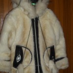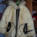 шубка на девочку. мех искусственный.цвет белый с пепельным. очень красивая и теплая. фото немножко искажает.дочь носила с 5 до 7 лет. рукавчик регулируется. поэтому сначала носили .как шубку. а потом ...