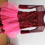 Платье на новогодний праздник. Цвет: бордо + кислотно малиновый. Длина от плеча до последнего рюша: 78 см, Ширина по плечах 21 см, Длина рукава: 46 см, Ширина рукава 12,5 см. Подойдет для худеньких де...