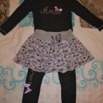 Костюм тройка: леггинсы, гольф и велюровая юбочка. Размер 110, идеальное состояние. Гольф: плечи 27 см, рукав 35 см, ширина по подмышкам 29 см, длина изделия 37 см от плеча вниз. Лосинки: длина 60 см,...
