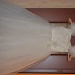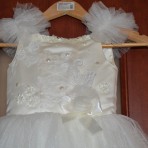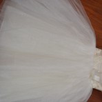 Пышное нарядное "свадебное" платье. Рукава платья выполнены из присобранного фатина. Лиф украшен аппликацией на цветочную тему. Юбка - 4-х слойная фатиновая на подкладке. Цвет -кремовый. Торг