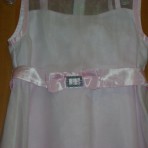 Продам нарядное платье для девочки 5-6 лет. Цвет светло-розовый .Рост 128 см. Состояние нового, надевалось один раз на выпуск в детский сад. Сзади платье на молнии, завязывается на бант, есть подклад...