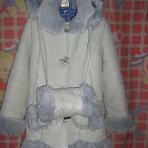 Дубленка зимняя. Голубая с муфточкой. 4-5 лет. Длина 58 см, длина рукава 40 см, ширина спинки 32 см. 120 гн. состояние отличное