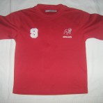 Футболка красная с длинным серым рукавом: 35 грн., рост 122-128 см (7-8 лет), длина 45 см, ПОГ 39 см.