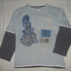 Футболка голубая с длинным серым рукавом, апликация "дракон": 35 грн., рост 122-128 см, длина 46 см, ПОГ 37 см.
