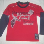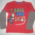 Футболка красная с длинным синим рукавом: 35 грн., рост 128 см (8-9 лет), длина 48 см, ПОГ 40 см.