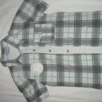 Рубашка серая в клетку: 30 грн., на спине серая вставка с надписью,длина 55 см, ПОГ 40 см, хлопок 95% + эластан 5%.