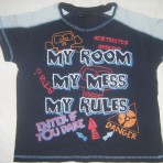Футболка серая с рисунком: 15 грн., длина 42 см, ПОГ 33 см, новая с этикеткой.