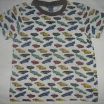 Футболка белая с машинками: 10 грн., длина 45 см, ПОГ 36 см, в нормальном состоянии.