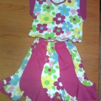 Летний костюмчик на девочку: юбка и кофточка. Юбка из 8 клиньев (4 белых в цветочек, 4 малиновых), пояс на резинке. Охват талии по резинке 38 см, длина юбки 31 см. Кофточка белая в цветочек с отделкой...