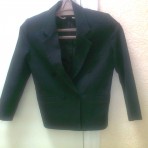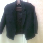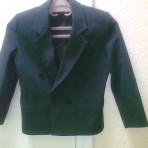 Школьный двубортный пиджак бутылочно-зеленого цвета на маленького первоклассника, на подкладке. Длина плеча 10 см, длина рукава 42 см. Средняя высота по спинке 47 см, высота спинки от верхней точки пл...
