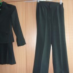 Костюм-тройка (пиджак, сарафан, брюки) темно-зеленого цвета для первоклассницы в хорошем состоянии. На этикетке указан рост 122, но лучше ориентируйтесь по следующим замерам: пиджак ПОГ 36 см, шири...