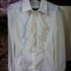 Школьная блузка польского производителя, отличное качество, проходили 1-2 класс, в идеальном состоянии, размер точный к сожалению не могу сказать (бирку отрезали), но нам подошла на 122-128.