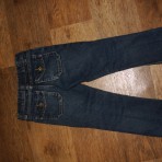 джинсы на девочку , подойдут на возраст 3-5 лет. Смотрите замеры: длина 61см, по внутреннему шву - 43см,талия 26см(утяжка), бедра 29см. потертости на коленях родные.джинс плотный