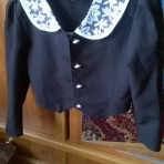 Школьный пиджак легкий черный. 6-8 лет. Гипюровая отделка воротника. Рукава-фонарики. Длинна пиджака по талию.