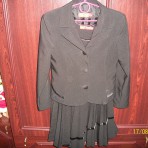 Форма черного цвета.На бирке указан рост 128см. Длина сарафана-62см,Длина пиджака-40см, рукав-45см