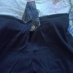 Застегивается на пуговичку и маленькую змейку, сзади и впереди с карманами. На всех карманах вышивка мотыльков. Сзади карманы украшены стразами. Впереди, где мотыльки кармана нет. Есть утяжка (резинка с регулировкой и застежкой на пуговицу).