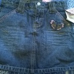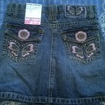 Застегивается на пуговичку и маленькую змейку, сзади и впереди с карманами. На всех карманах вышивка мотыльков. Сзади карманы украшены стразами. Есть ...
