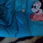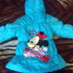 куртка демисезонная, осень-теплая зима, подкладка синтепон+флис. цвет бирюза на рост 104-116 см. сзади накат минни (немного треснула картинка см. фото), спереди - вышивка. от кнопки есть маленькое пят...