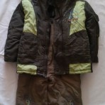 Куртка и комбез верх тканевый, внутри синтепон и флис. Цвет скорее оливковый нежели зелёный. Комбез по цвету светлее чем куртка. Капюшон утеплён и отстёгивается. Состояние для двора. Легко стирается....