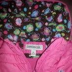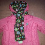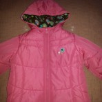 курточка ярко розового цвета с шарфом в тон подкладке капюшона фирмы London Fog. Написано на рост 4, но это смотря, какой ребенок. На очень худенькую девочку не подойдет, т.к куртка свободная и утяжки...