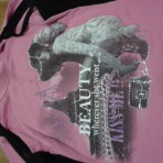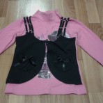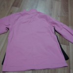 Водолазка розового цвета с черное пришитой накидкой впереди.