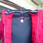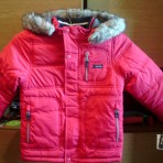 Съемный меховой воротник, глубокий капюшон, дополнительно утеплена спинка и капюшон флиссовой серой подкладкой. Внутренняя защита от снега.Очень красивый красный цвет. По теплоте, как на меня, отлично подойдет на зиму.