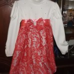Нарядное платье с гипюром на девочку 3-4 лет, приятное к телу. Длина изделия 57 см. Окружность груди - 60 см. Ширина в плечах -28 см.