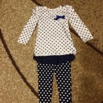 Комплект на девочку от 3 лет до 5, в хорошем состоянии, без дефектов, трикотаж, лосины - по талии в свободном состоянии 20см, тянется до 27 см, 59 см. - длина, (внешний шов), 44 см. внутренний шов. К...
