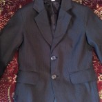 Красивый брючный костюм на первоклассника,черный в мелкую белую полосочку,на брюках можно регулировать ширину пояса .Маленький размер,подойдёт на не высокого,худенького мальчика.тел.0639524595.