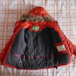 Курточка очень теплая и хорошая, но есть ньюанс - ткань зацепили утюгом (см. фото), на это место можно нашить лейбу.