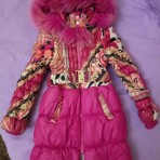 Очень теплый пуховик для девочки 5-6 лет, рост 122 см.Мех натуральный. Состояние хорошее, но есть небольшая дырочка сбоку внизу(видно на фото)