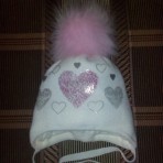 Зимняя шапка, ткань мелкая вязка, внутри тонкий утеплитель + флисовая подкладка. Шапка на завязках, обьем 52-54, украшена меховым бумбоном