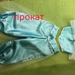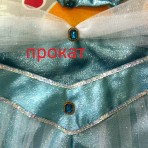 Нарядный восточный костюм принцессы Жасмин цвета морской волны. В комплекте шаровары длинной 60 см с блестящей фатиновой юбкой и поясом, топ и резинка на голову. Подойдет на 4-6 лет. Топ сзади на регу...