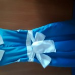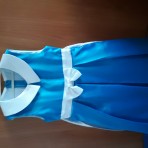 Выпускное платье моей доченьки. Голубой с белым атлас, фатиновый пришитый подьюбник, сзади застежка на змейку и завязывается на бант. Одевали платье 2 раза. К платью есть повязка на волосы, шилась инд...