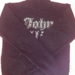 Покупала дорого, свитер черный, стразы на месте, состояние хорошее, немного в катышках