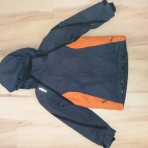 Куртка в отличном состоянии. На тонком синтепоне. С оранж. вставками рукав от плеча-41см.спинка-52см.спинка с флисовой вставкой, внизу внутри дополнительно резиночкой застегивается.,от ветра.