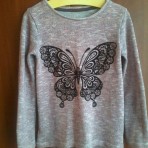 Продаю кофточку с качественным принтом, немного удлиненна сзади. Длина 43 см, длина рукава 42 см.
