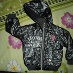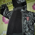 На 3-4 года. Весна - теплая осень. Длина по спинке 41 см, рукав от плеча 35 см, ширина 36 см. Темно-серый цвет. Капюшон отстегивается. Подкладка- флис.