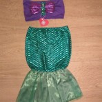 Состоит из фиолетового лифа , на груди имитация ракушек и 4-х жемчужин, и изумрудной юбки, которая заканчивается красивым клешем, в виде хвоста Русалочки.