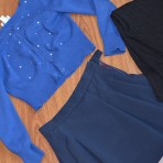 Юбка - указан 116, большемерит на 122, на поясе регулятор на пуговицах. 50 шерсть, 50 полиестер, на подкладке