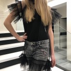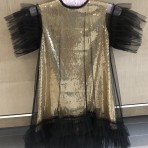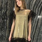 Праздничное платье для девочки. Состоит из двух отдельных элементов : коктейльное платье в пайетку и прозрачная туника, которую можно одевать ещё и под джинсы. Бренд «Miss Nice». Размер 122-128, есть ...