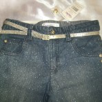 Качественные девичьи брючки турецкой фирмы Zeplin. Ткань не тянется, вся в блестках, на кармашках и кнопках - стразики. Размер 110 ( на рост 106 см). Указанный телефон - вайбер.